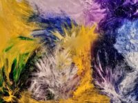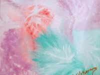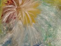 C’est un plaisir pour Michèle de peindre en étant en contact avec la vibration de l’âme de la personne, de ses guides qui lui transmettent des messages d’amour; de jouer, de danser avec ses pinceaux ou avec ses mains pour être en canalisation et créer une peinture vibratoire.